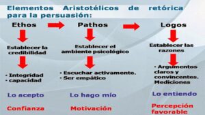 El líder necesita, pues, hacer uso de la persuasión para transmitir su energía: pasión, poder, motivación y fuerza. Por otra parte, antes de convencer usando el logos (convicción), primero necesita dejar sentado el pathos (emociones) y el ethos (credibilidad), de acuerdo a los elementos retóricos definidos en la filosofía griega.