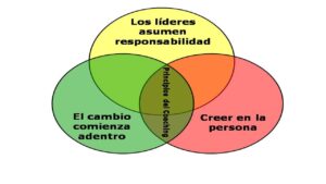 Los tres principios esenciales son: creer en la persona, el cambio ocurre desde adentro, los líderes toman responsabilidad.