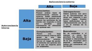 En línea con esto la psicóloga Eurich propone cuatro arquetipos para caracterizar la forma de autoconciencia de las personas: