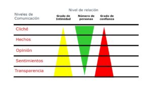 En la medida que la relación crece, también crece el nivel de la comunicación. Cuando la relación crece en transparencia, confianza e intimidad, los interlocutores se sentirán más cómodos tratando temas de mayor nivel de profundidad.